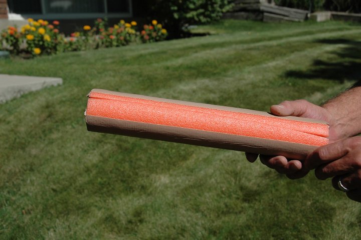 I located my objective, those garishly colored, closed-cell foam “Noodles” with a narrow hole the entire length that kids use in swimming pools and picked one up and tucked it under my arm. Then I asked Ron to show me to the hardware section of the store. Once again I zeroed in on my next need, Duct Tape. I bet Ron really thought I had gone off the deep end then.
