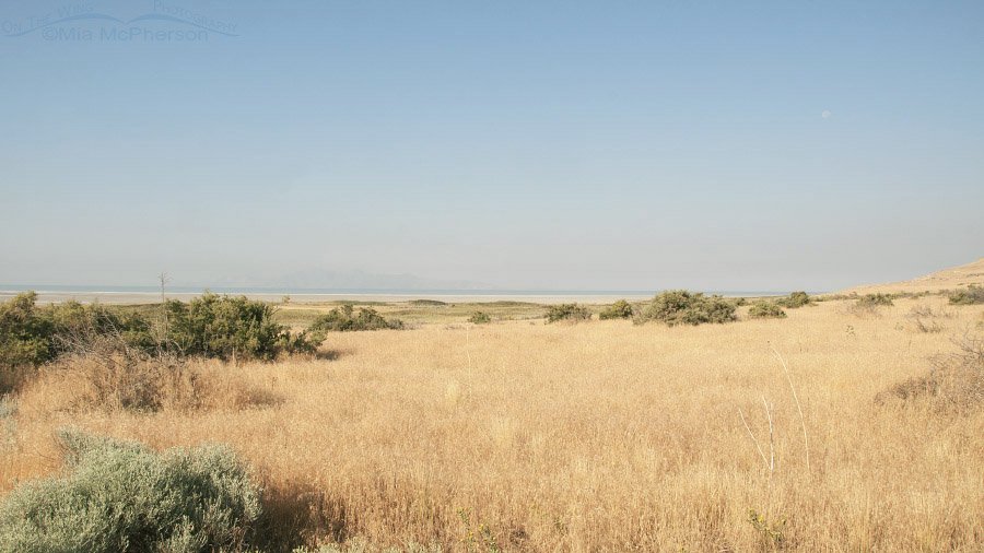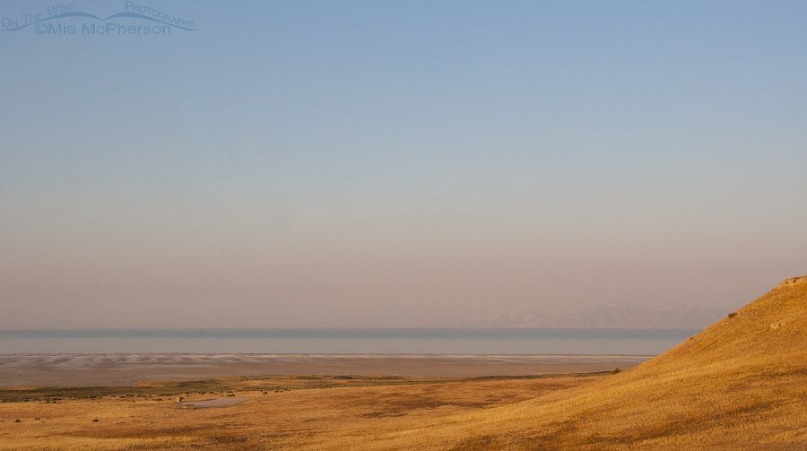 I took this image from Buffalo Point early in the morning when the light was still golden and the smoke had a touch of a pink glow to it. If you look carefully you can make out one section of the mountains on the other side of the shore of the Great Salt Lake. A photo taken near this location on a clearer day can be seen here.