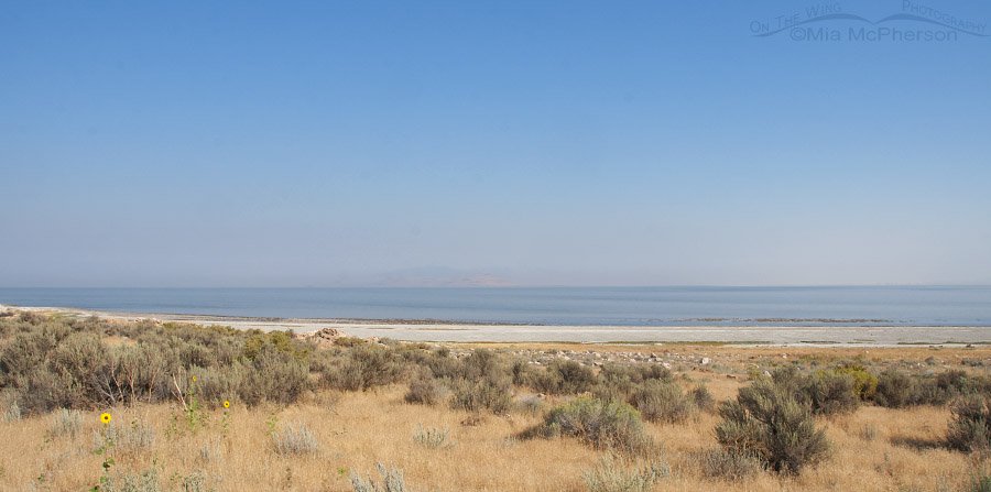 In this image I can’t see any of the mountains on the other shore of the lake, just the ones one the west side of Antelope Island. It was nice to see a bit of blue sky above the smoke though it wasn’t so nice seeing the smoke below it.
