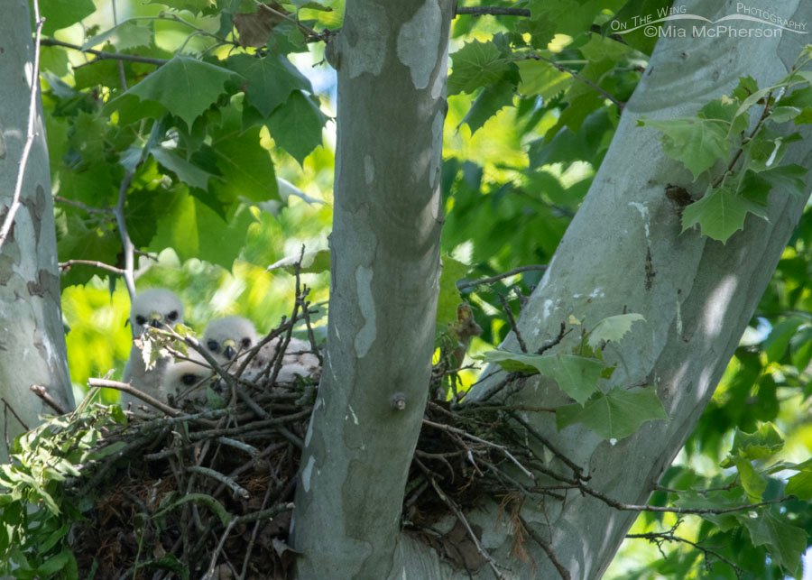 *Although this isn’t what I consider a high quality image of the chicks in the nest, it is likely the best I will be able to take at this location. There are thick trees to the east and west and the nesting tree has a heavy canopy. Because of that, the lighting is tricky.