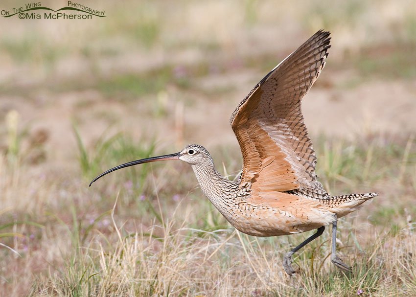 Title: Long-billed Curlew lifting off from its breeding grounds