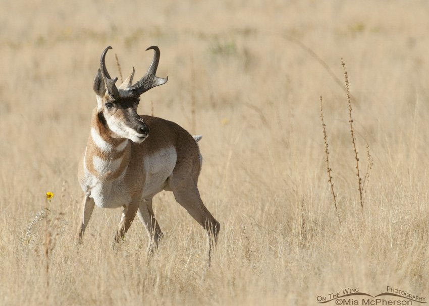 Title: Pronghorn buck reacting to another buck