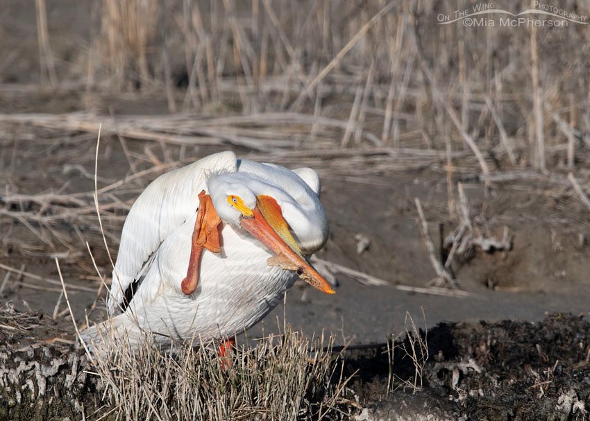Title: American White Pelican scratching its head