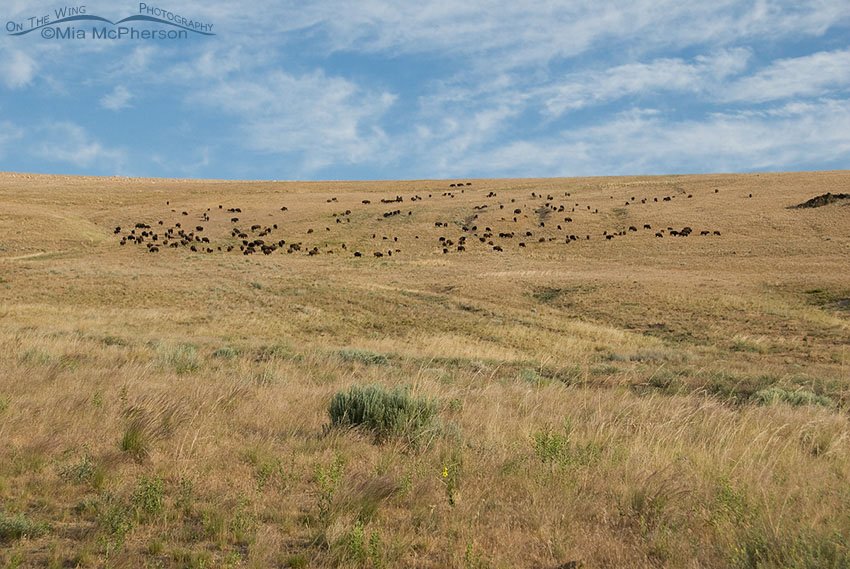 Title: Antelope Island American Bison herd making their way to the freshwater springs