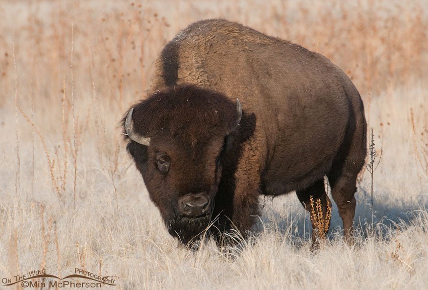 Title: American Bison bull in winter grasses