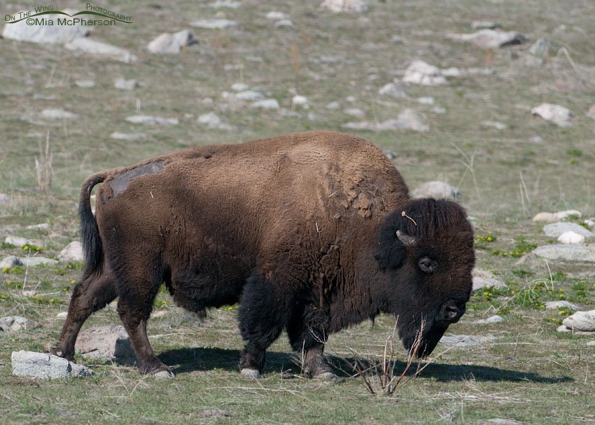 Title: American Bison bull just starting to shed its winter coat