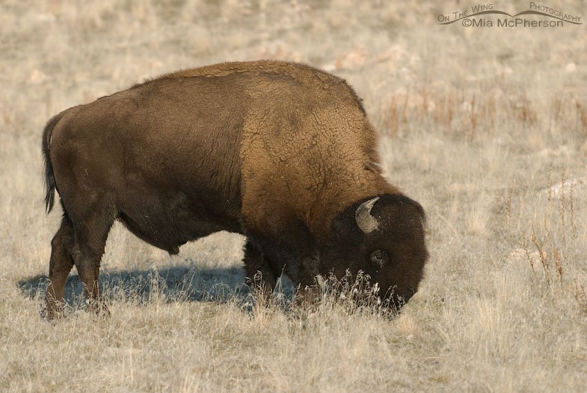 Title: Bull American Bison feeding on Antelope Island State Park