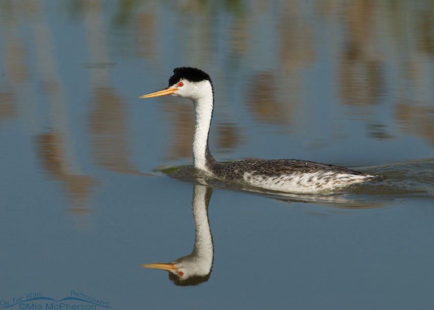 Title: Clark’s Grebe on multi-hued water