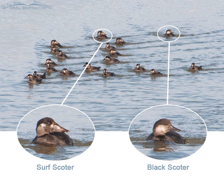 Photo with insets showing the Black Scoter among the Surf Scoters