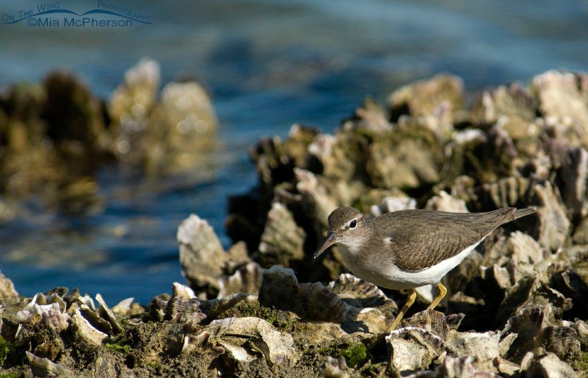 Title: Foraging Spotted Sandpiper on exposed shell bed