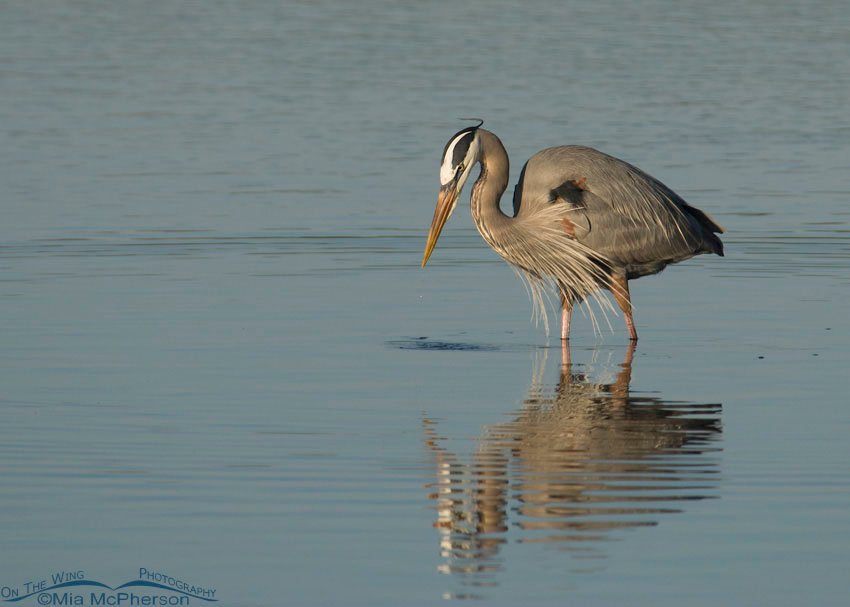Title: Great Blue Heron hunting in a tidal lagoon