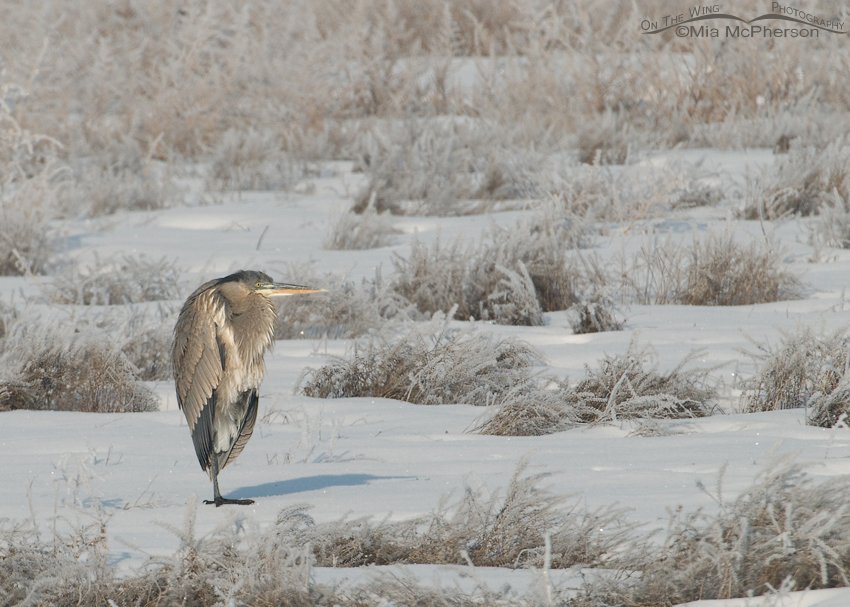 View Larger Image Great Blue Heron in the snowMia McPherson Image Information and Description Title: Great Blue Heron in the snow Location: Farmington Bay WMA, Davis County, Utah Date: 1/11/2010 Related Posts Image Details Categories: Great Blue Heron Images Tags: adultArdea herodiasDavis CountyFarmington Bay WMAGreat Blue HeronheronsmarshsnowyUtahwading birdswetlands