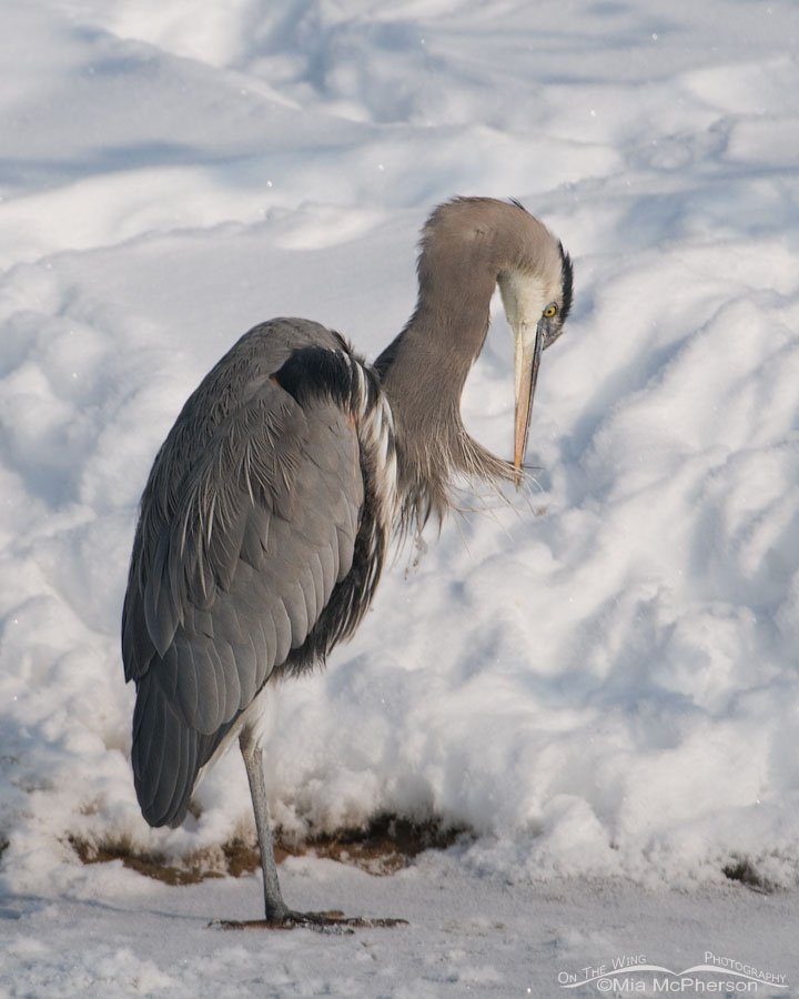 Title: Great Blue Heron trying to remove ice from its plumage