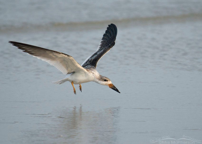 Title: Juvenile Black Skimmer landing on the Gulf shore