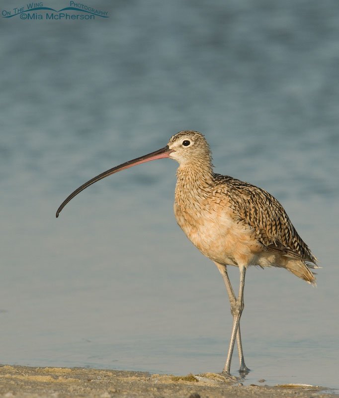 Title: Long-billed Curlew at the edge of a lagoon