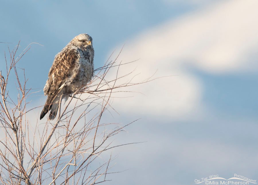 Title: Male Rough-legged Hawk perched on a Tamarisk