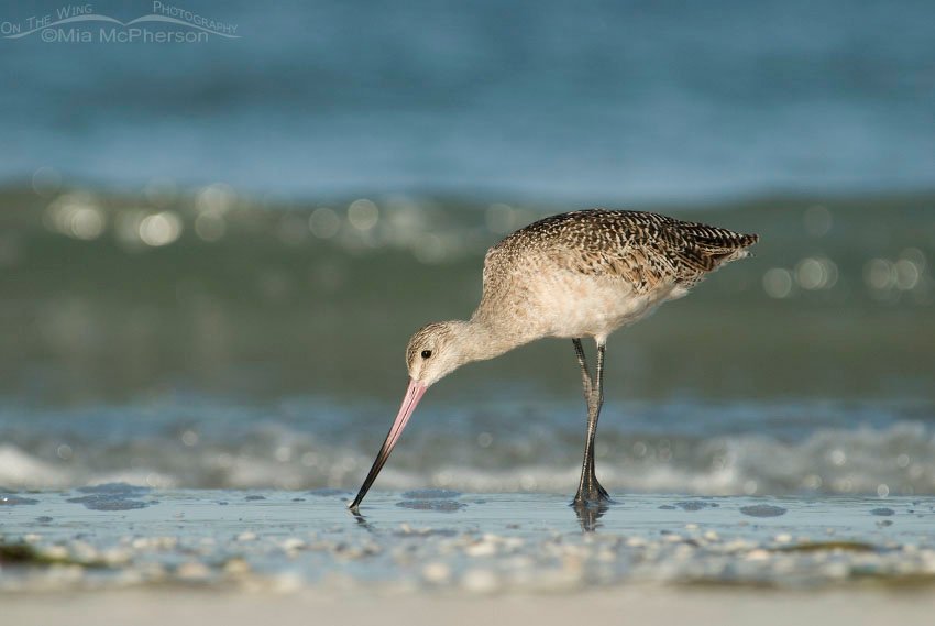 Title: Marbled Godwit feeding at the edge of the Gulf