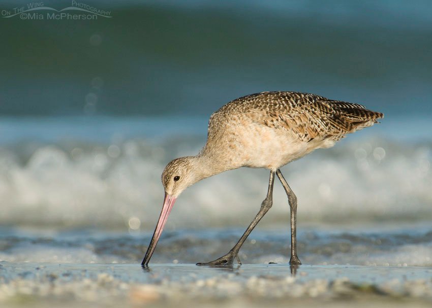 Title: Marbled Godwit feeding in the surf at Fort De Soto