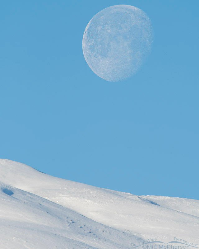 Title: Moon setting over the snow-covered Promontory Mountains