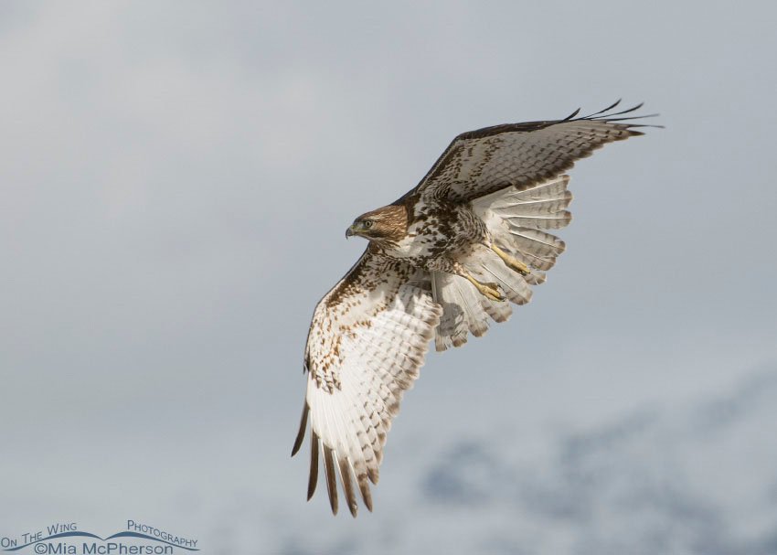 Title: Red-tailed Hawk with snowy Wasatch Mountains in the background