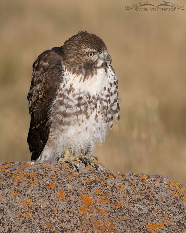 Title: Red-tailed juvenile fluffed up because of cows that are close by